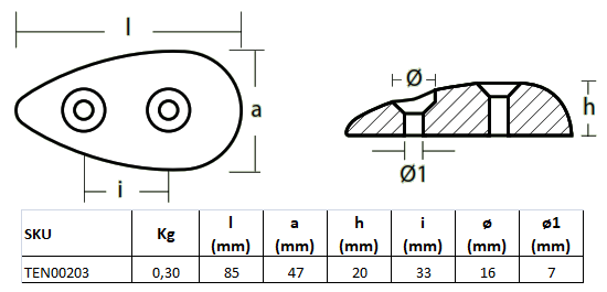 SKU: TEN00203 Categorías: Accesorios, Anodos, Flaps ANODO OVAL 85X40X15 ANODO OVAL 85X40X17 Productos relacionados ANODO DISCO DOBLE 130 mm. ANODO TIMON 190 mm ANODO POPA 140 mm. TIRADOR PESTILLO T