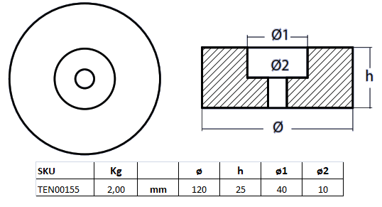 Producto anterior Siguiente producto SKU: TEN00155 Categorías: Accesorios, Anodos, Popa ANODO Anodo. ø 120 mm. ø1 40 mm. ø2: 10 mm. H: 25 mm. SKU: TEN00155 Categorías: Accesorios, Anodos, Popa Anodo. ø 120 mm. ø1 40 mm. ø2: 10 mm. H: 25 mm. Productos relacionados Vista rápida Vista rápida ANODO DISCO DOBLE 90 mm. Vista rápida Vista rápida TIRADOR PESTILLO T Vista rápida Vista rápida ANODO POPA 140 mm.