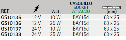 SKU: GS10136 Categorías: Accesorios, Bombillas, Material electrico BOMBILLA 12V 25W BAY15d Para luces de navegación. Filamento vertical. Productos relacionados ANODO TIMON 90 mm TIRADOR PESTILLO T ANODO DISCO DOBLE 90 mm. ANODO TIMON 140 mm UK