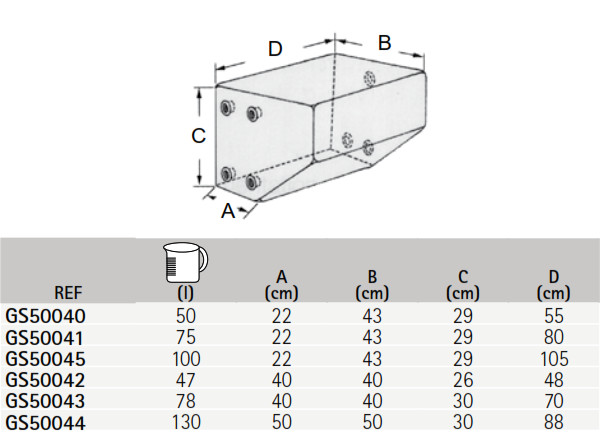 Fabricado en polietileno color azul. Provisto de tapa de registro y roscas hembras.