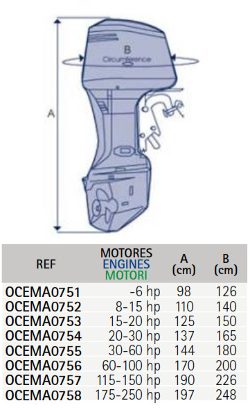 SKU: OCEMA0753 Categorías: Accesorios, Cubierta y Herrajes, Fundas para fueraborda FUNDA FB COMPLETA HASTA 15 A 20HP Para motores fueraborda de 2 y 4 tiempos. Confeccionadas en tejido de poliester de 320 g/m2.Impermeabilizado, transpirable. Costuras reforzadas. Color gris claro. Productos relacionados ANODO TIMON 70 mm ANODO DISCO DOBLE 130 mm. ANODO POPA 140 mm. COMPLETO ANODO POPA 140 mm. COMPLETO