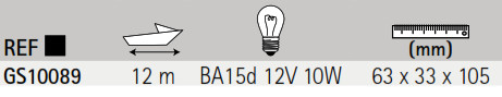 SKU: GS10089 Categorías: Accesorios, Luces navegacion, Material electrico LUZ FONDEOTIPO (A/S-20) 12V 10W BA15d Fabricadas en plástico. Lentes acrílicas. Productos relacionados ANODO BAGLIETTO 120 mm. ANODO TIMON 90 mm ANODO TIMON 190 mm ANODO DISCO DOBLE 130 mm.