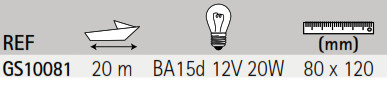 SKU: GS10081 Categorías: Accesorios, Luces navegacion, Material electrico LUZ TODO HORIZ. TIPO AS-40 BA15d Luz todo horizonte, blanca de fondeo. Cuerpo y base de plástico negro y lentes soldadas por ultrasonidos. Casquillo BA15d Productos relacionados ANODO BAGLIETTO 120 mm. ANODO TIMON 190 mm ANODO DISCO DOBLE 130 mm. ANODO POPA 125 mm. COMPLETO