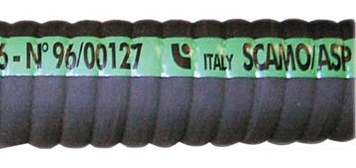 Manguera de goma de espiral ondulada para sistemas de escape y refrigeración. Su particular estructura permite efectuar radio de curvatura de 1 a 1,5 vueltas por el diámetro interno.
