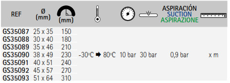De goma ideal para aspiración de agua del mar. Resistente al calor.
