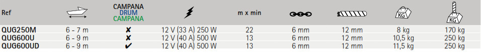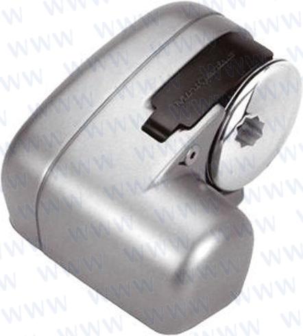 Molinete eléctrico horizontal, con roldana para cadena y cabo. Construido en aluminio anodizado resistente a la corrosión. Se suministra con palanca de accionamiento manual y relés de funcionamiento.