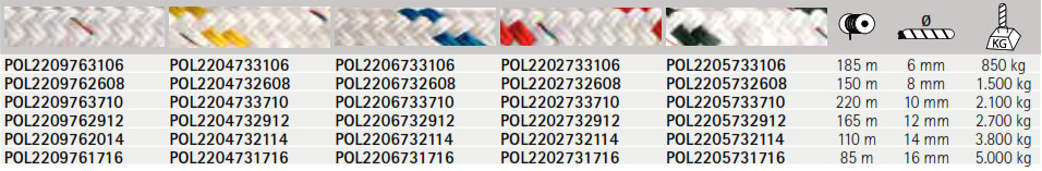 Cabo trenzado pre-estirado con alma de poliester y funda exterior de poliester de 16 cordones. Suave y flexible. Facilidad para hacer gazas.Ideal para escotas y drizas.