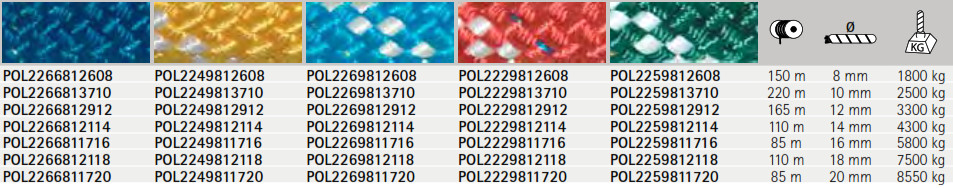 Cabo trenzado pre-estirado con alma de poliester y funda exterior de poliester de 32 cordones. Mínimo estiramiento. Ideal para drizas.