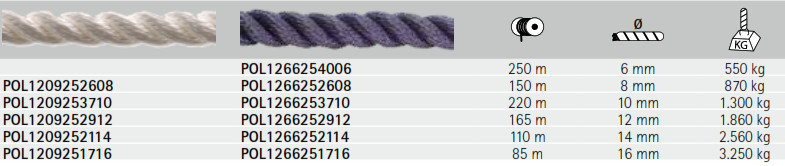 SKU: POL1209252912 Categorías: Acastillaje / amarre y fondeo, Accesorios, cabos POLYSOFT BLANCO 12 mm. (165 M) Cabo de polipropileno multifilamento. No absorbe el agua. Acalabrotado 3 cordones. Productos relacionados TIRADOR PESTILLO T ANODO BAGLIETTO 120 mm. ANODO BAGLIETTO 135 mm. ANODO TIMON 50 mm
