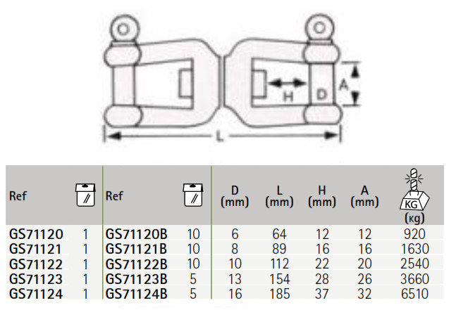 SKU: GS71122B Categorías: Accesorios, Cubierta y Herrajes, Grilletes Inox AISI-316 SACAVUELTAS DOBLE GRILLETE M-10 (PACK 10 Productos relacionados ANODO TIMON 140 mm ANODO TIMON 190 mm ANODO BAGLIETTO 135 mm. ANODO POPA 125 mm.