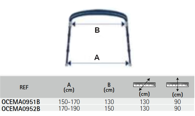 Toldo de 3 arcos para embarcaciones de pesca y paseo. Construidos con tubo de aluminio anodizado de 25 mm de diámetro, con terminales de plástico.