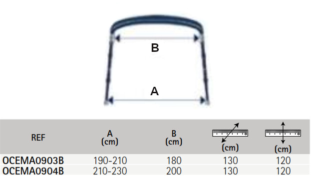 Toldo de 3 arcos para embarcaciones de pesca y paseo. Construidos con tubo de aluminio anodizado de 25 mm de diámetro, con terminales de plástico.