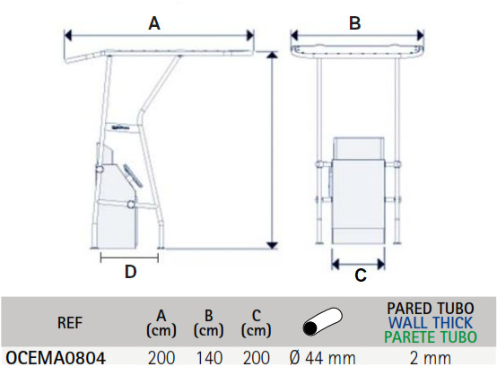 Para montaje en consola. Toldo protector montado sobre estructura de aluminio anodizado de alta resistencia.